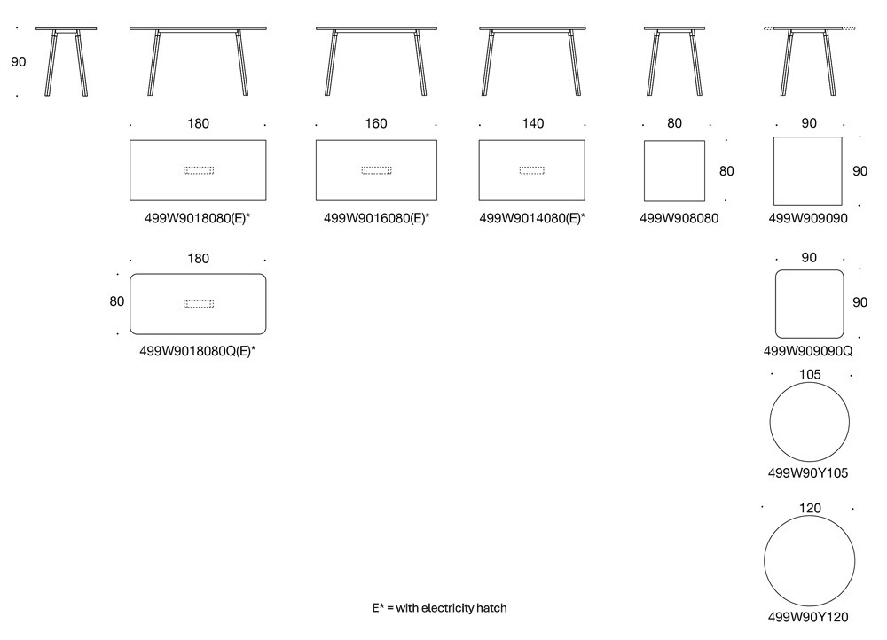 Pöydän kansi: valkoinen tai tammilaminaatti, tammi-, saarni tai petsattu saarniviilu, mattalaminaatit, linoleumit