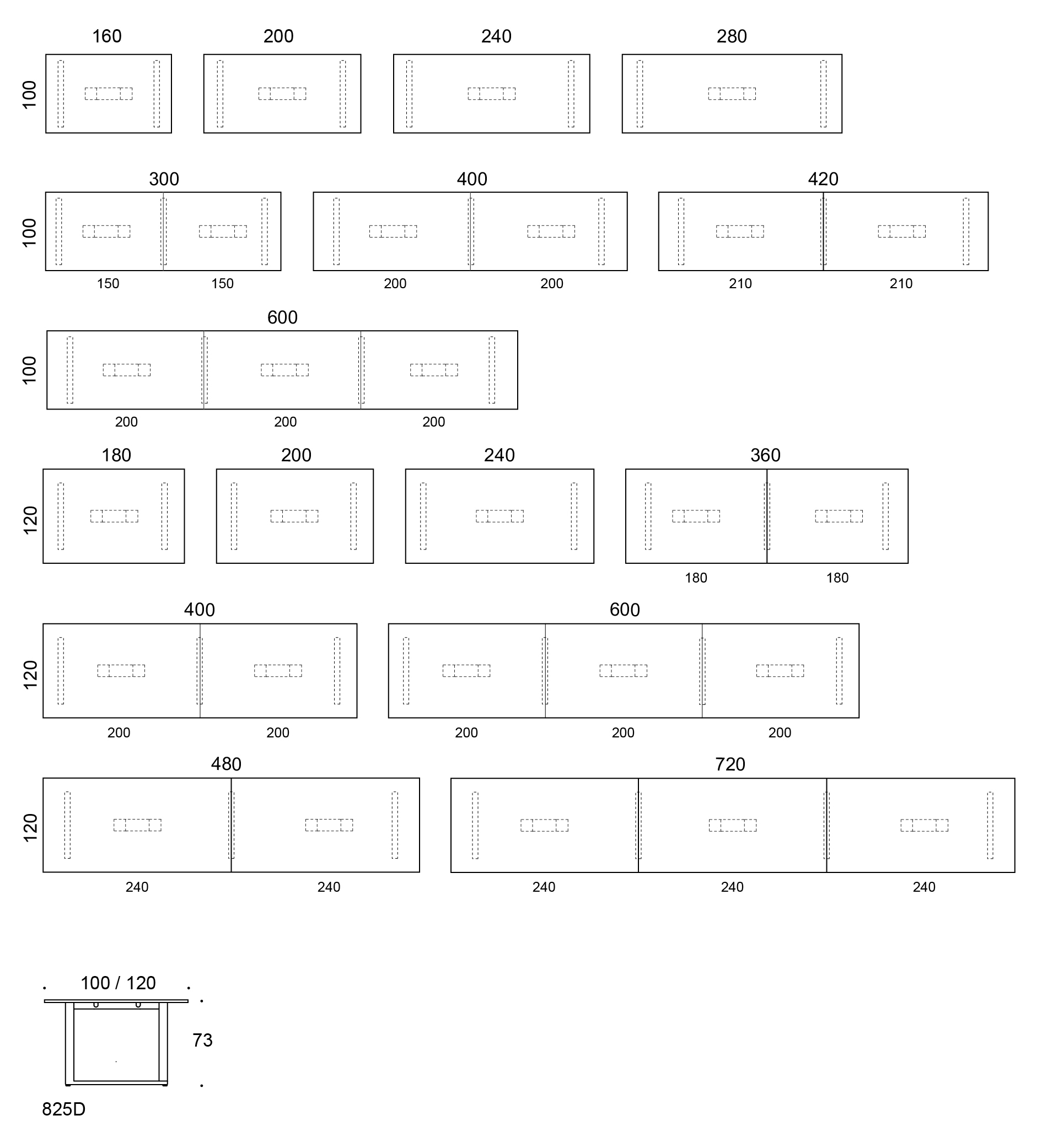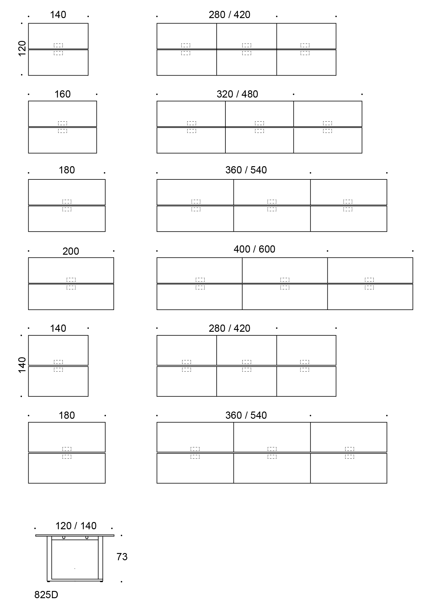 Korkeus 73 cm, kansi 420x140 cm, pistorasiayksikkö
