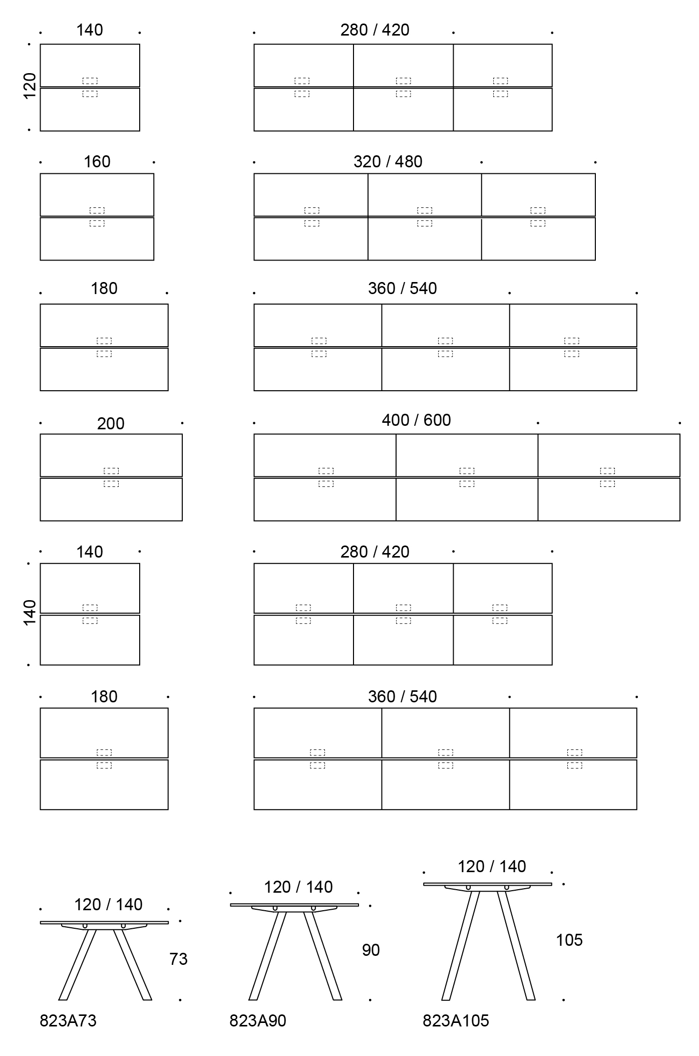 Korkeus 73 cm, kansi 420x140 cm, pistorasiayksikkö