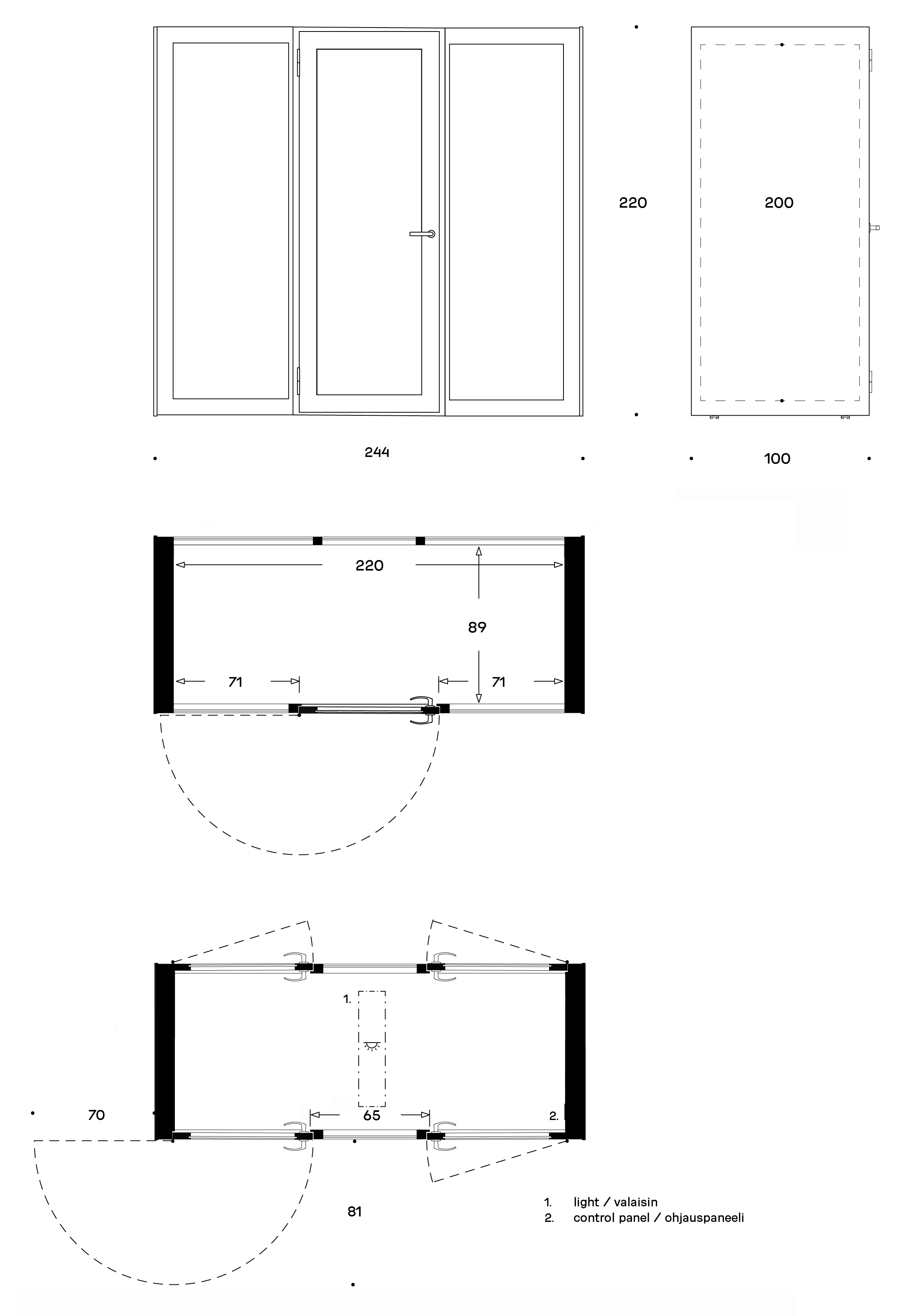 - Front center door handing - Oikeakätinen
