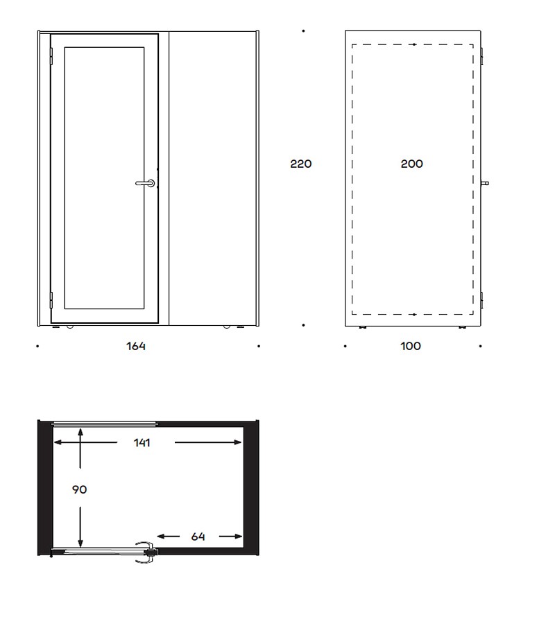 Soundproof Sono Phone L is well-suited for video meetings and short-term work. Standard features include castors and motion-controlled lighting and ventilation. Sono Phone L is suitable for a desk (optional accessory) with a width of 80 cm and a depth of 60 cm.