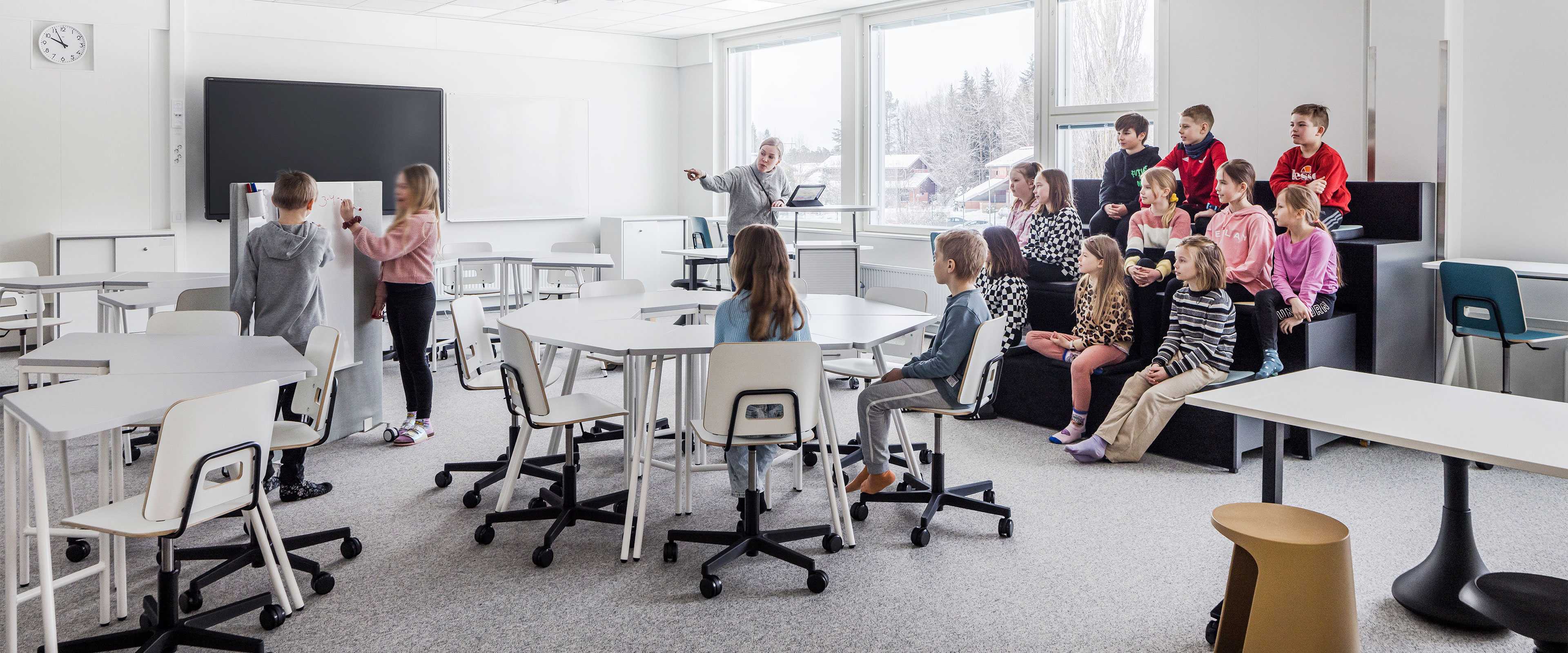 Martela ansvarade både för skolprojektets användarbaserade lokal- och möbeldesign samt för övriga livscykeltjänster: projektledning, leverans och montering av nya möbler, tömning av tillfälliga lokaler, mellanlagring och leverans av möbler till olika enheter samt hållbar återvinning av överflödiga möbler.